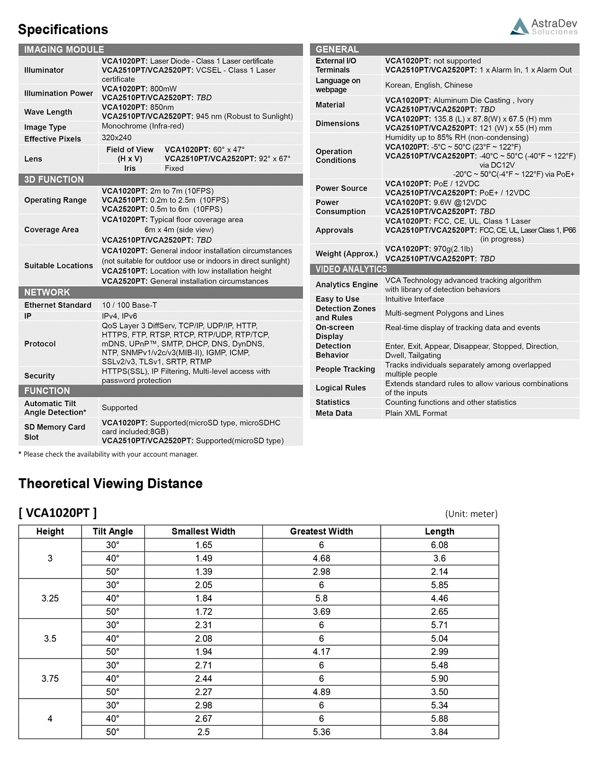 La serie Intelligent People Tracker es un rastreador de personas inteligente de propósito especial para el seguimiento, conteo y cola de personas altamente preciso. Gestión que combina tecnología de imagen 3D de vanguardia con análisis de video inteligente. Incorporando el alto rendimiento en el analisis de video de VCA, la serie Intelligent People Tracker tiene una precisión de medición muy mejorada en comparación con la generación actual de cámaras térmicas y estereoscópicas. La serie Intelligent People Tracker tiene un gran sistema de seguimiento analítico de video preciso y tiene un excelente rendimiento incluso cuando un objeto está parcialmente oculto por otros. La serie Intelligent People Tracker también admite la medición de colas estacionarias para que el movimiento de personas no sea necesario para mantener el seguimiento.